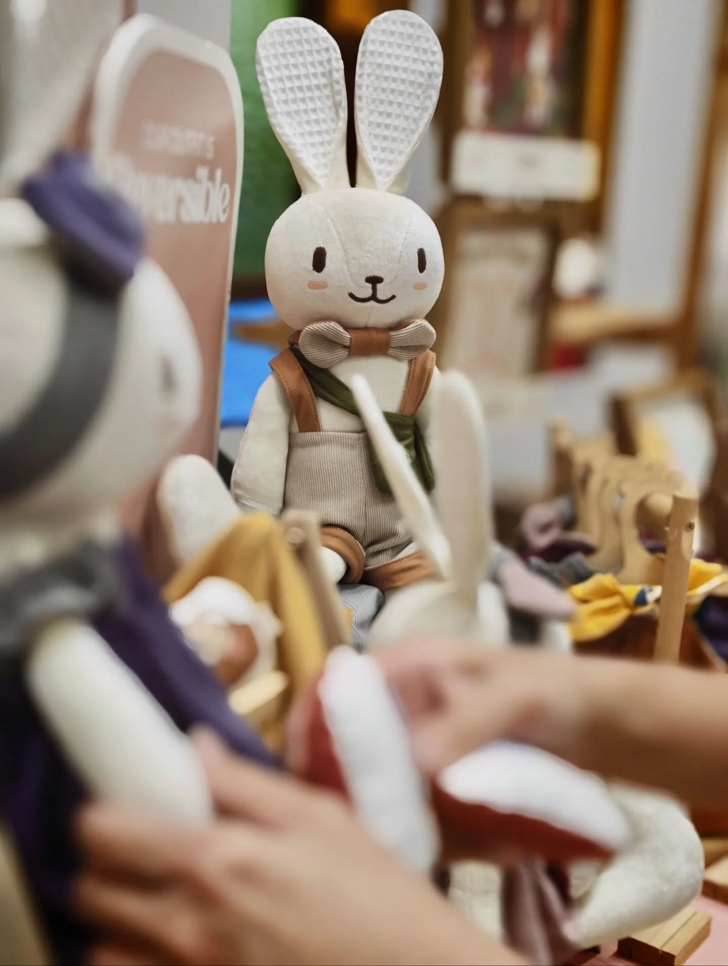 Handmade plush bunny with organic oeko-tex CPSIA certified material